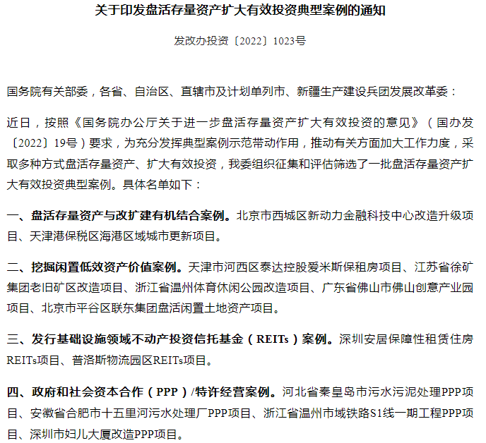 【轉載-國企國資】發改委公布24個盤活存量資產擴大有效投資典型案例