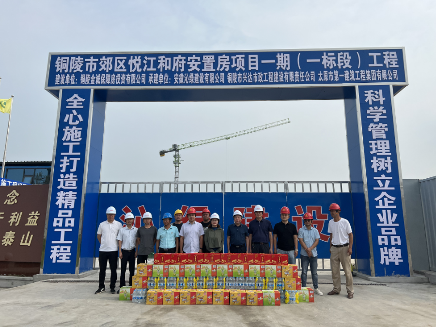 集團領導前往悅江和府安置房項目、汐有三期項目等多個項目,給奮斗在工地一線崗位建設者送去了藿香正氣、涼茶等防暑藥品和清涼物資, 向他們在高溫天氣堅守崗位、辛勤付出表示感謝,并叮囑大家提高安全生產意識,注重防暑降溫工作。