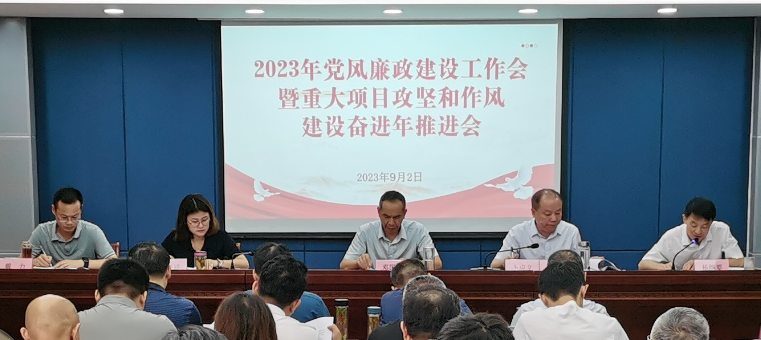 9月2日,金誠投資集團在三樓大會議室召開2023年黨風廉政建設工作會暨重大項目攻堅和作風建設奮進年推進會。金誠投資集團領導班子成員,權屬公司中層及以上人員,集團本部全體人員,共60余人參加此次大會。
