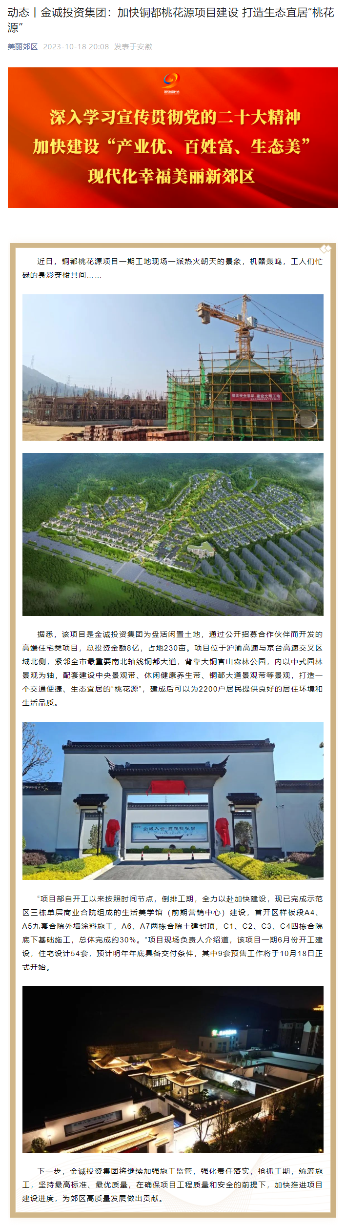 動態丨金誠投資集團:加快銅都桃花源項目建設 打造生態宜居“桃花源”