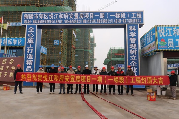 12月20日上午,在銅陵市郊區老洲鎮政府以北、沙池大道以西,一場熱鬧的封頂儀式在悅江和府安置房項目一期(一標段)工程現場舉行。隨著一陣喝彩聲,工人們開始澆筑混凝土,標志著該項目完成了整體封頂的重要里程碑。