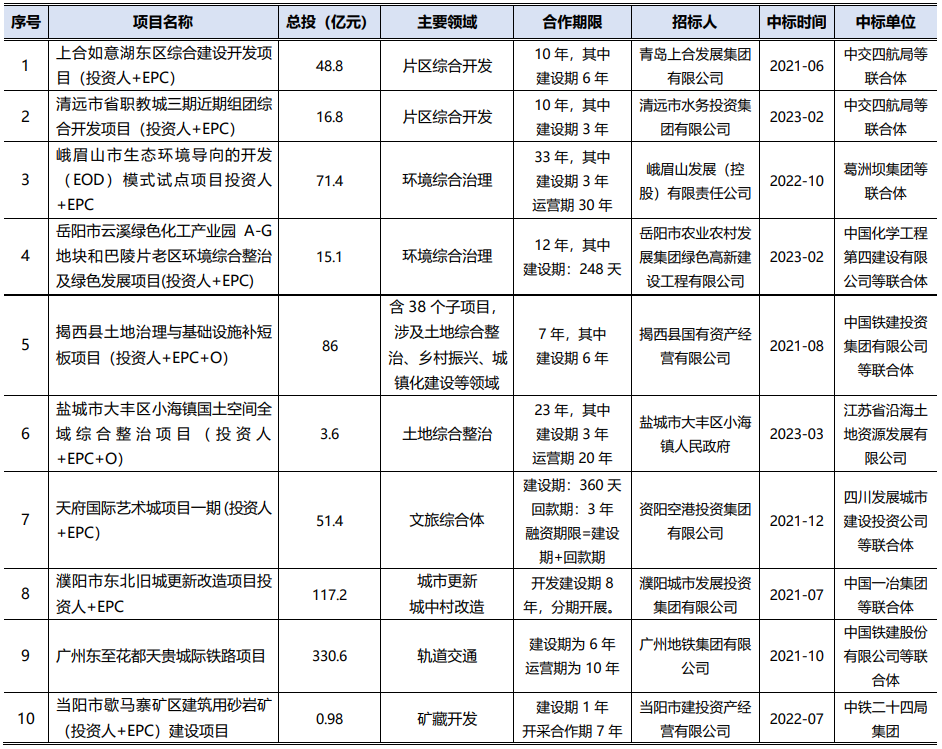 “投資人+EPC”模式過去常見于綜合性片區開發項目,合作內容復雜,投資規模動輒幾十億起步,需求場景相對有限。受政策調整影響,加之部分行業“松綁”,“投資人+EPC”模式的適用范圍也越來越廣泛,逐漸涵蓋環境綜合治理、城鎮化建設、市政基礎設施建設、城中村改造、文旅綜合體、土地整治、鄉村振興、軌道交通等領域。