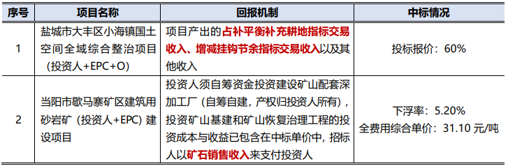 從“投資人+EPC”模式下項目合作性質來看,項目經營收益應作為主要投資回報方式。傳統片區綜合開發類項目的經營收益主要來源于商業開發、工業廠房租賃、配套設施等,而在近年來才逐步推廣適用“投資人+EPC”模式的新領域項目中,經營收益來源則更貼合項目實際,表現上更加豐富新穎,如土地整治類項目的經營收益主要來源于耕地指標有關的交易收入等,礦藏開發類項目的經營收益主要來源于礦石銷售收入等。